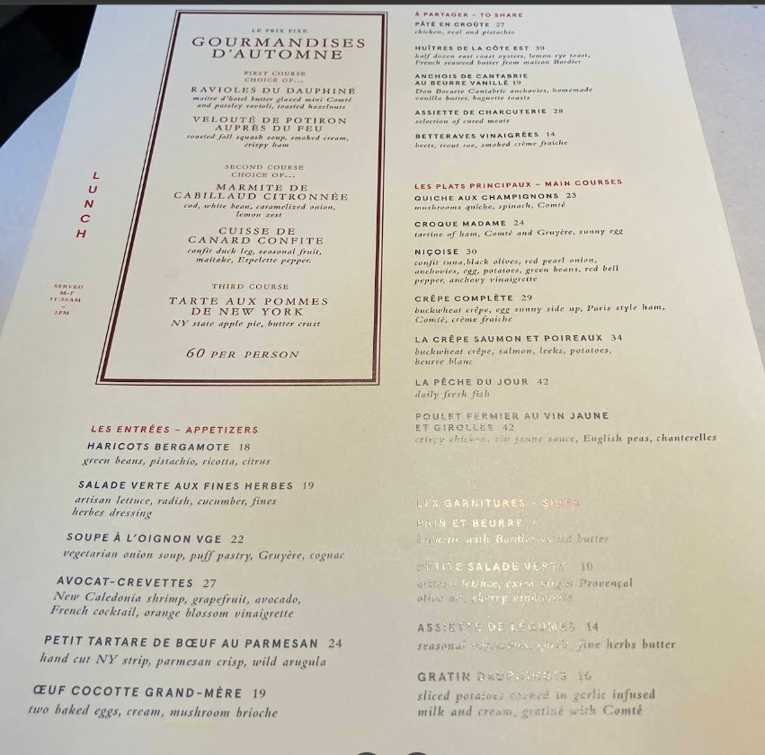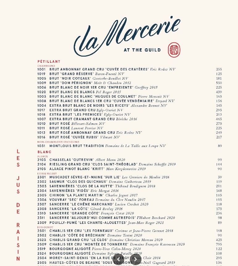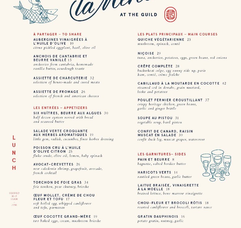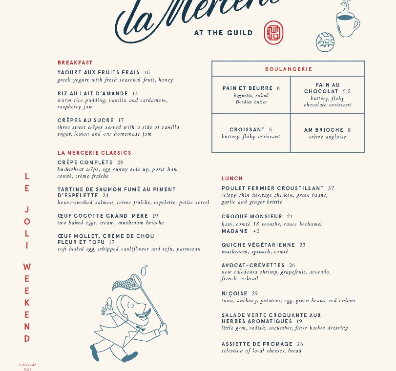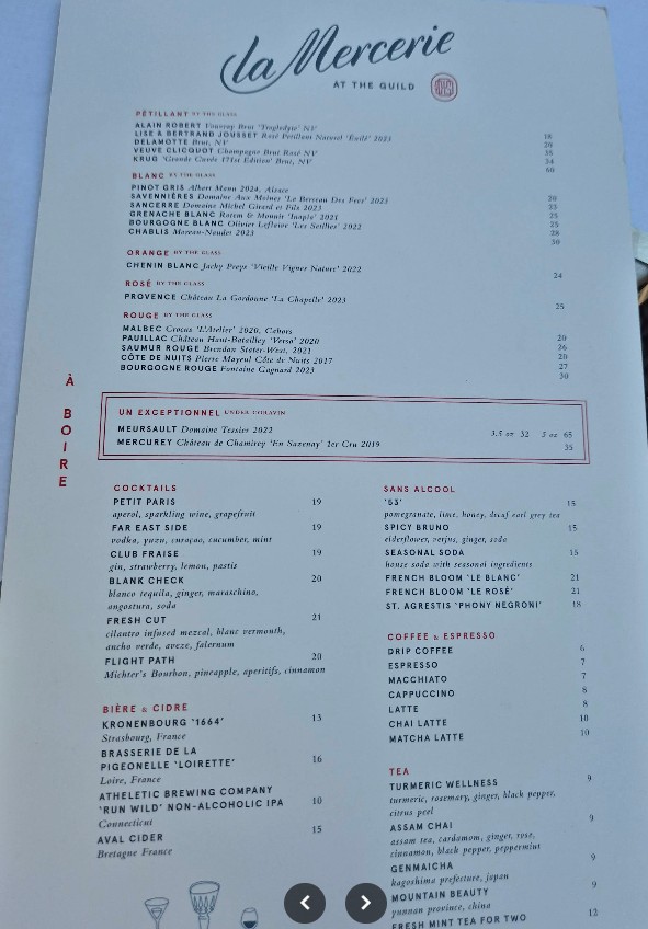 Welcome to La Mercerie Restaurant, a refined French dining destination located in the heart of New York City. Known for its elegant ambiance and exceptional culinary craftsmanship, La Mercerie offers a thoughtfully curated menu featuring classic French dishes, seasonal ingredients, and beautifully presented meals. Whether you're planning a sophisticated brunch, a relaxed lunch, or an intimate dinner, the La Mercerie Restaurant menu delivers a perfect balance of tradition and innovation. Explore the menu today and experience one of New York’s most celebrated brasserie-style restaurants.